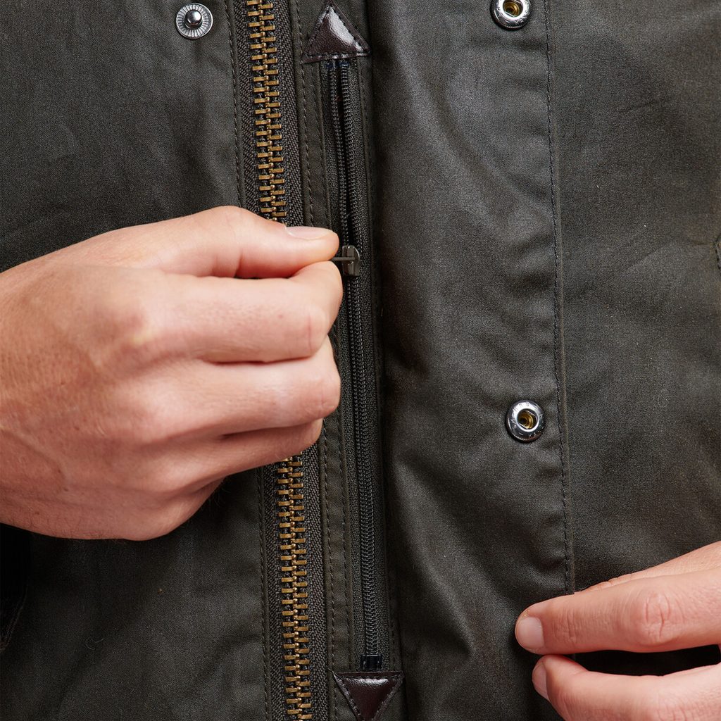 Elegantna i praktična voštana zimska jakna Barbour Bristol izrađena od laganog voštanog pamuka (6oz). Topla podstava, također izrađena od pamuka, s tartan uzorkom nadopunjena je vodootpornim patentnim zatvaračem koji se čvrsto uvlači u ovratnik prekriven samtom.