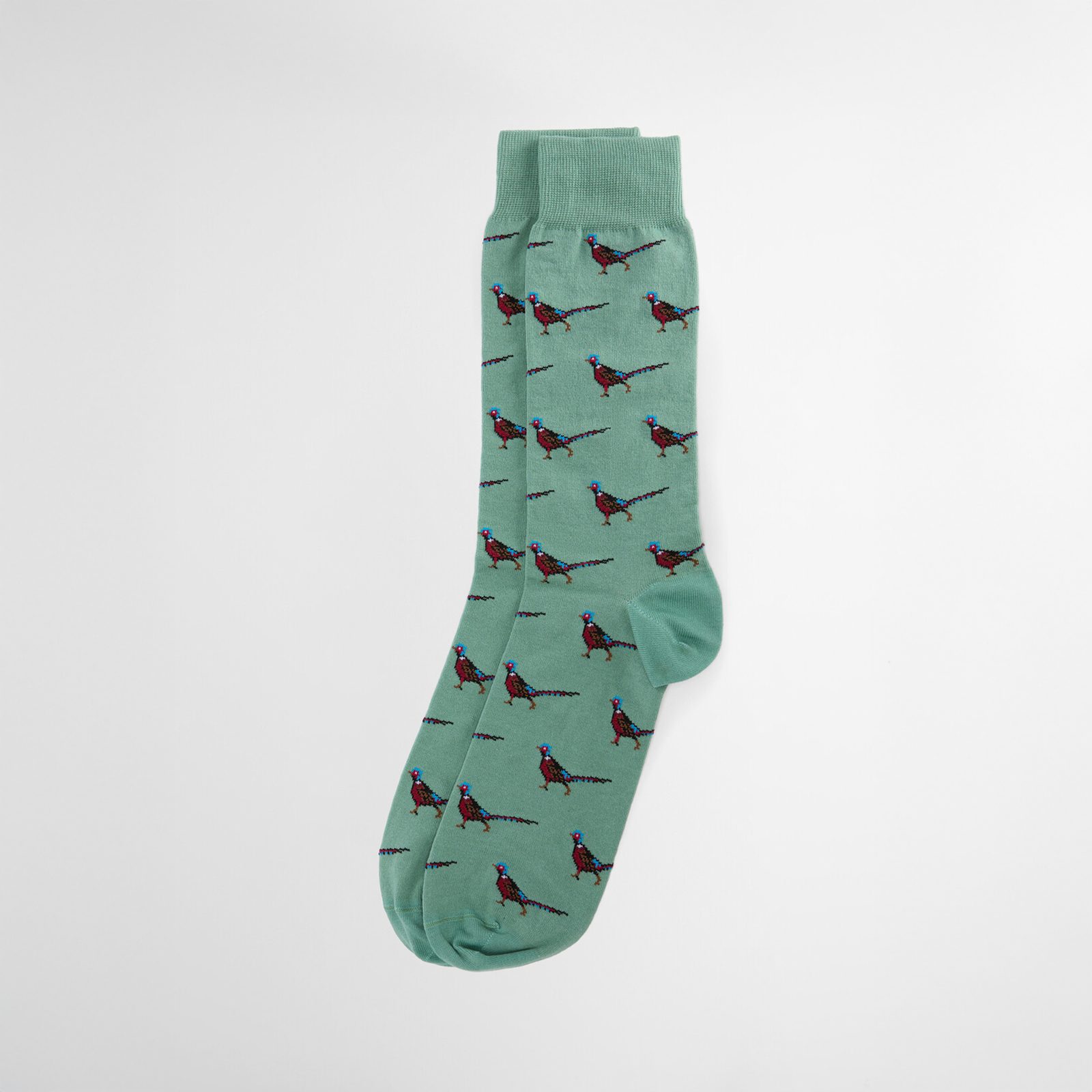 Jednobojne čarape koje su na svjež način obogaćene životinjskim uzorkom – ovdje s motivom tradicionalnih seoskih fazana.