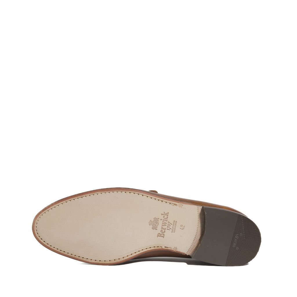 Iako nemaju baš karakterističnu mašnicu, mirne savjesti možemo reći da je ovdje riječ o loafers cipelama u belgijskom stilu. Imaju vrlo vitku siluetu (i dalje su pritom prilično široke i vrlo se brzo razgaze), a umjesto belgijske mašnice ovdje se nalazi dekorativna dvostruka kopča preko rista. Gornjište je od glatke, ručno patinirane kože, pri čemu svaki par ima blago drukčiji prijelaz boje između nijansi. Potplat je izrađen od kože – na glavnom dijelu – i Vibram gume – na peti.