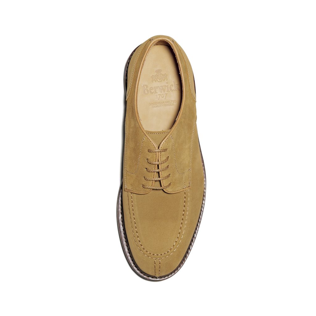 Klasične derby cipele Berwick s karakterističnim apron šavom na ristu kombiniraju opušten stil s pouzdanom, poštenom okvirnom konstrukcijom. Izrađene od finog brušenog antilopa u pješčanoj nijansi, djeluju ležerno, ali istovremeno elegantno – idealan izbor uz chino hlače ili traperice. Zahvaljujući robusnoj izradi i Vibram potplatu, izvrsno se ponašaju i u svakodnevnom nošenju.