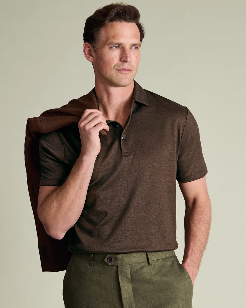 Charles Tyrwhitt Pure Linen Polo — Chocolate Brown M