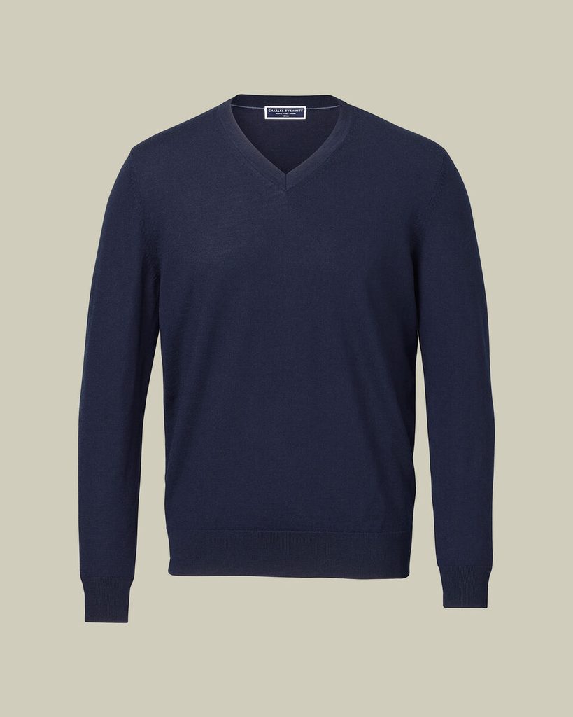 Charles Tyrwhitt Pure Merino V-Neck Jumper — Navy