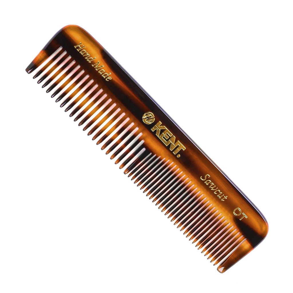 Kent džepni češalj s dvije širine zubaca pogodan za tanju i normalnu kosu. Ručno je izrezbaren od velikih listova prirodnog acetata - izdržljivog, savitljivog i ugodnog materijala na dodir. Zahvaljujući zaobljenim zubima se s njim lako rukuje.