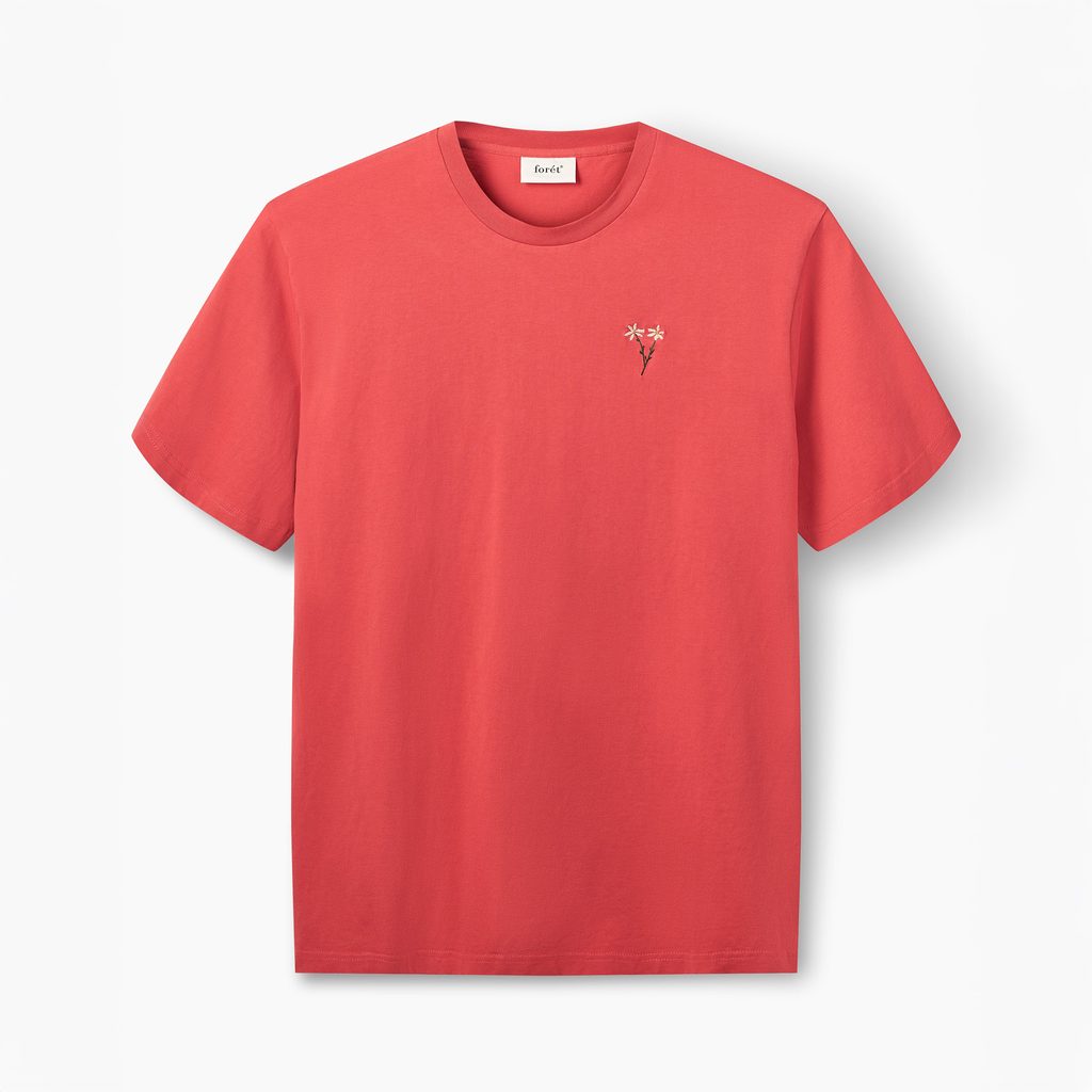 Ova minimalistička majica djeluje opušteno i pomalo nostalgično (tko se ne sjeća livada iz mladosti), a opet ostaje bezvremenski komad za svakodnevno nošenje. Izrađena je od kvalitetnog pamuka koji osigurava udobnost tijekom cijelog dana i prirodan izgled. Prednju stranu upotpunjuje nježan cvjetni motiv – buketić tratinčica – s posebnim karakterom.